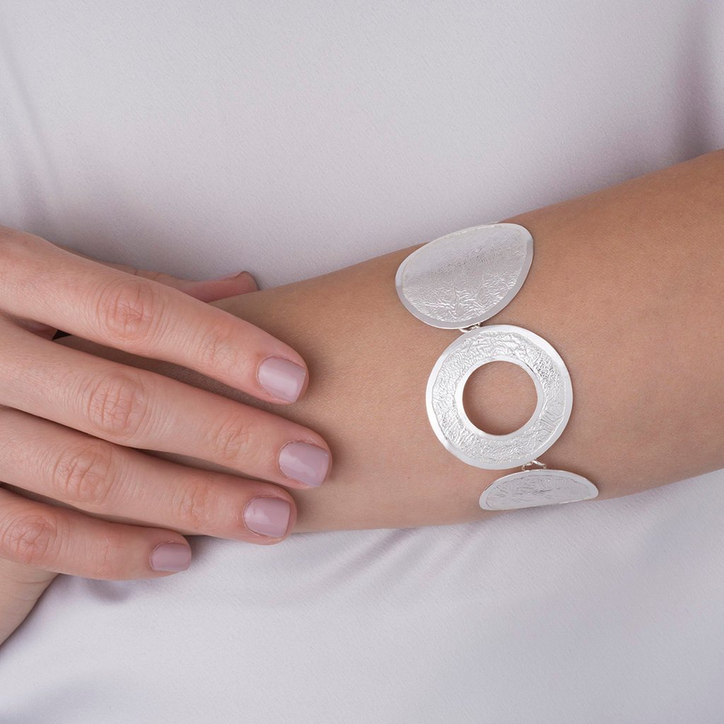 Bracelet from the Textures Collection of María Belén Jewelry, made in Silver .925, reticulated technique, shiny finish. Handmade in Mexico, in an artisan way.